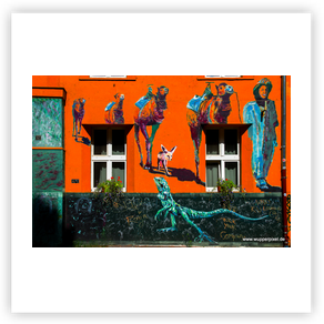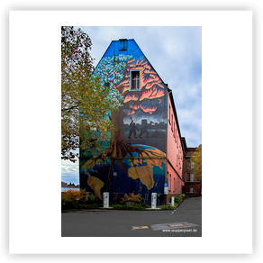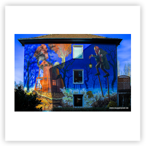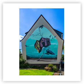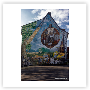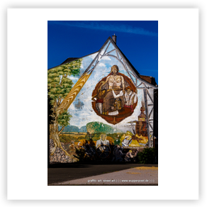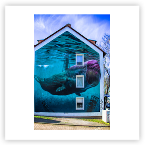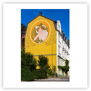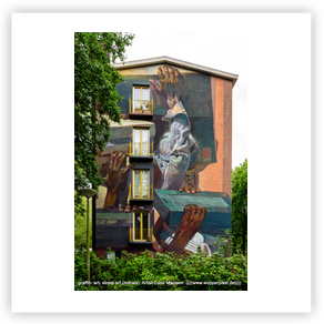 großformatige Wandmalerei an Häuserwänden. Oft sind es beauftragte Arbeiten,
